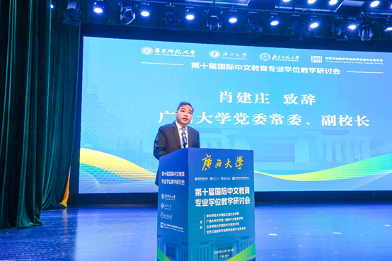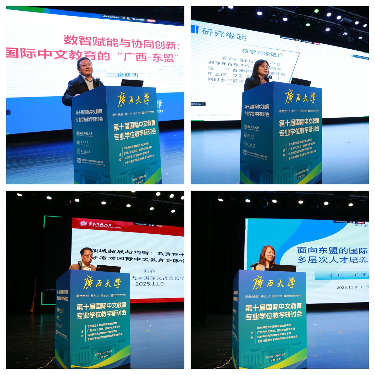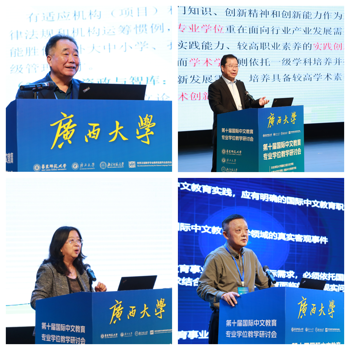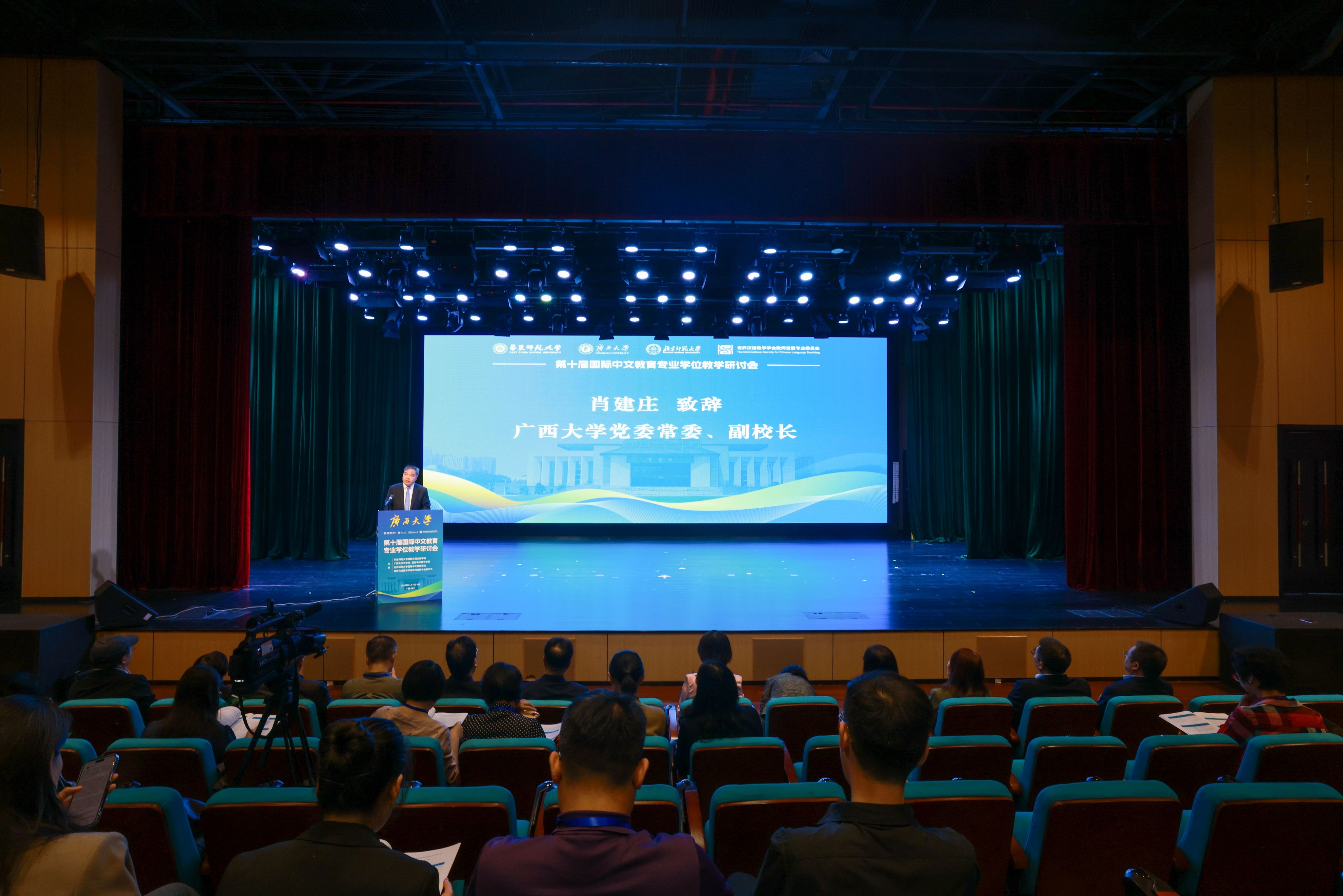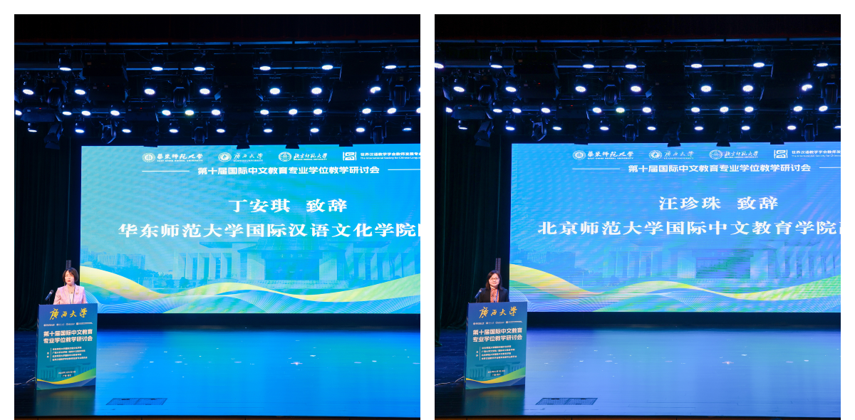 开幕式上,华东师范大学国际汉语文化学院院长丁安琪、北京师范大学国际中文教育学院副院长汪珍珠也代表主办方分别致辞。她们感谢广西大学及文学院对大会举办的辛勤付出,并期待通过深入研讨,与会专家学者能够为提升专业学位人才培养质量凝聚智慧,破解难题。