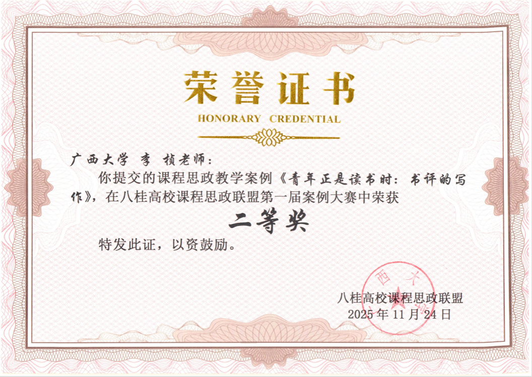 李桢老师的《青年正是读书时:书评的写作》课程思政案例荣获二等奖。该案例引导学生从经典阅读中汲取养分,并将阅读所思所感转化为具有真情实感与时代关怀的书写实践。案例超越了单纯的写作技巧训练,着重于通过阅读与写作的过程,锤炼学生的思维品质、审美判断力和价值表达能力,体现了中文学科以“读写”为核心的基本功训练对塑造青年健全人格、担当时代精神的价值引领和人文关怀。