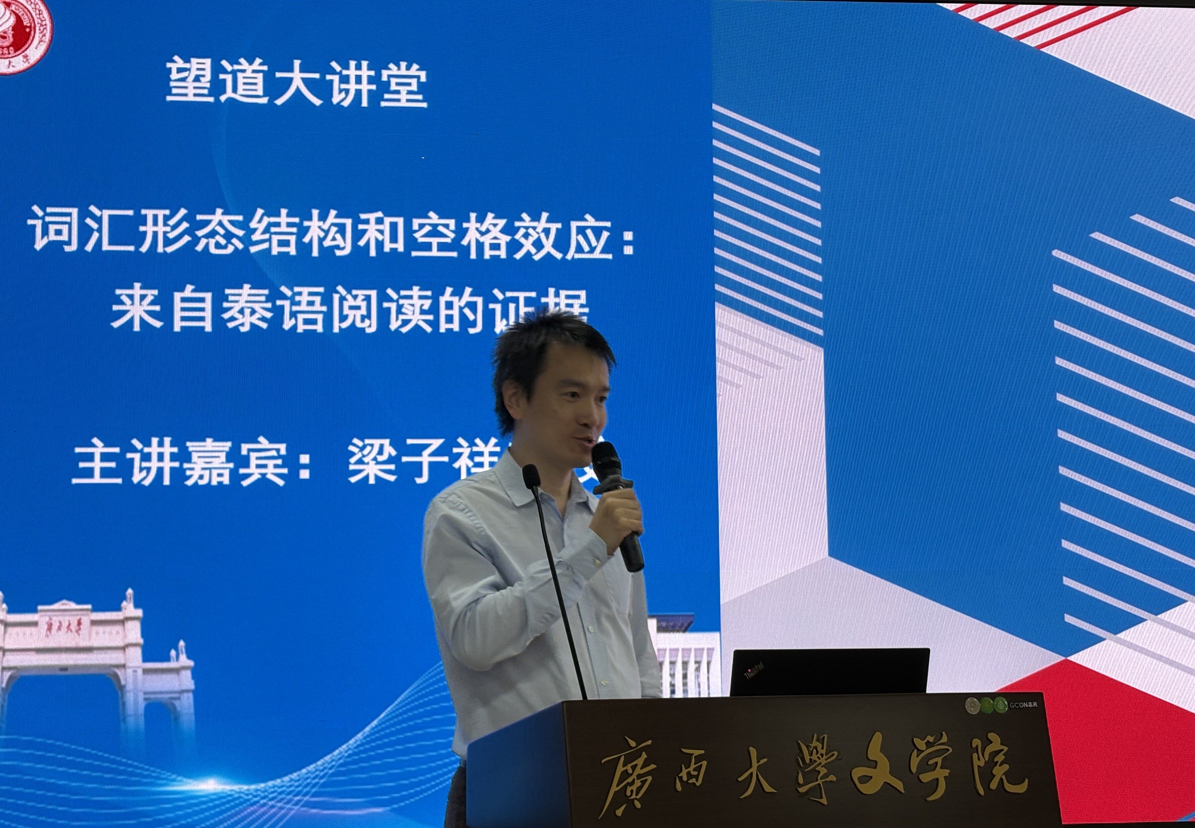 12月15日,阿联酋大学梁子祥教授做客“望道大讲堂”,为师生作题为“词汇形态结构和空格效应:来自泰语阅读的证据”的学术讲座。本次讲座由广西大学语言认知实验室主办,刘玉成老师主持。