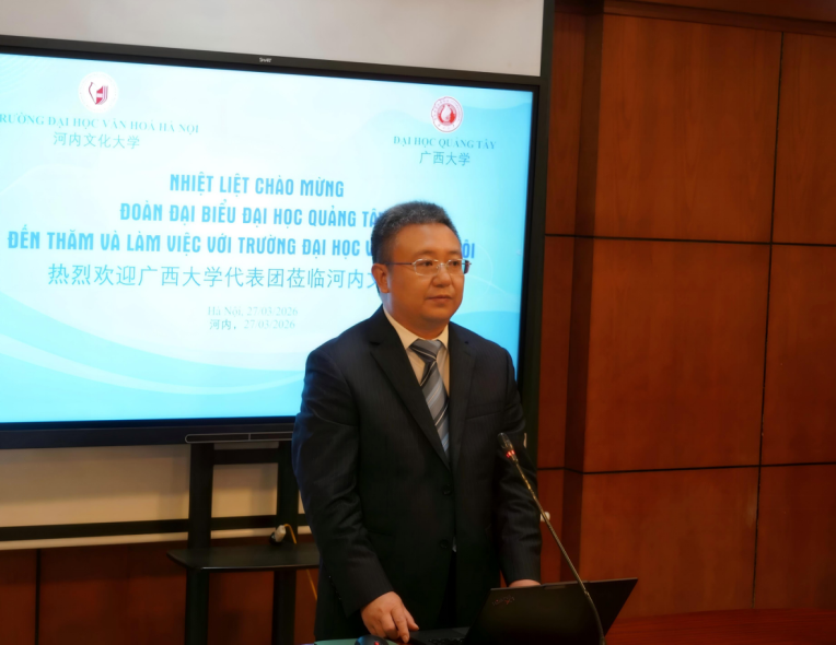 谢晓明教授对河内文化大学的热情接待表示感谢,并介绍了广西大学文学院在学科建设、人才培养、科学研究、社会服务及国际交流合作等方面的情况。他表示,希望此次访问成为双方合作的新起点,将共识转化为具体行动,并提出了未来深化合作的三大方向:一是建立常态化师生交流机制,互派学生短期游学,互派教师开展学术讲座与教学观摩,互聘研究生校外导师;二是创新人才联合培养模式,共同探索本科“2+2”、硕士“1+1”等联合培养项目,在选修课开展课程互选、学分互认、线上线下混合式教学等方面的创新改革,互设教育实践与人才培养海外基地;三是联手开展科研攻关,围绕“中越文化交流”“跨境民族语言文化”等双方共同关注的领域,组建联合科研团队,定期举办学术研讨会与考察活动,联合举办高水平学术会议,共同产出具有影响力的研究成果。