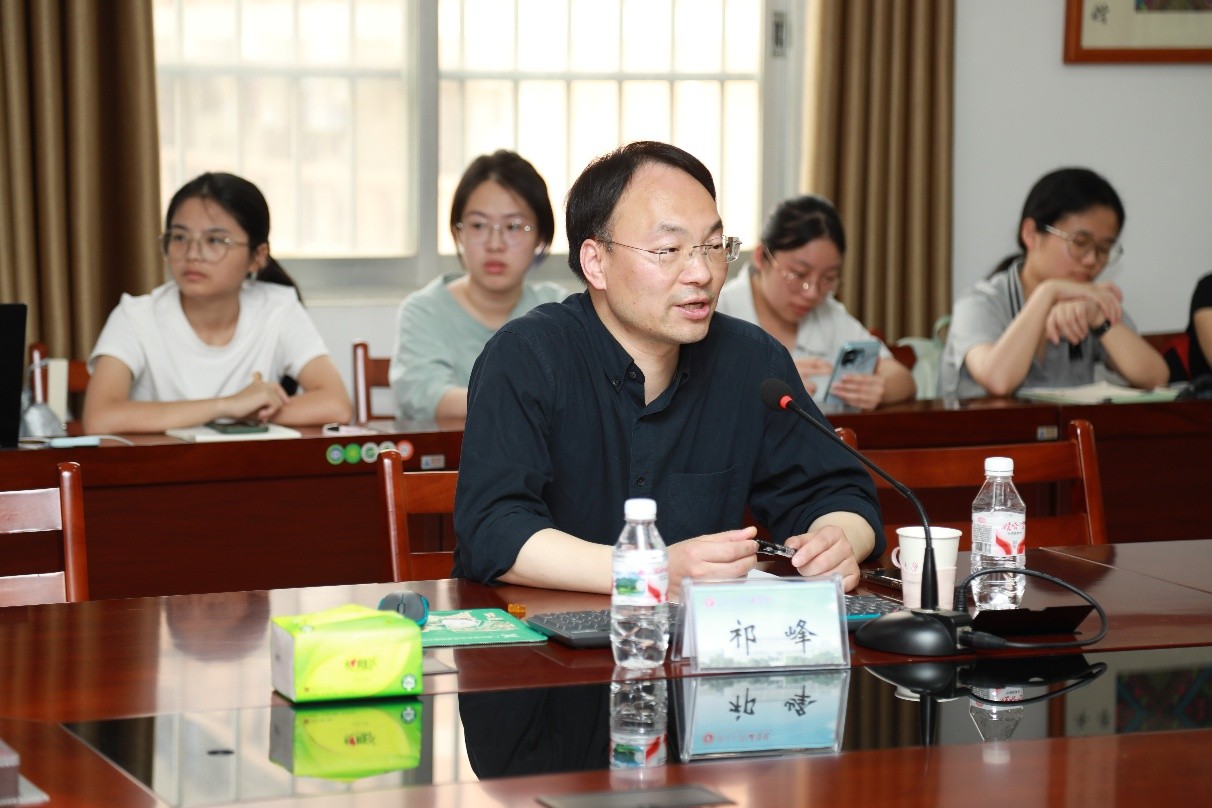 在交流环节,祁峰教授与现场师生就硕士论文中AI辅助教学相关研究、文科学生数据处理能力培养等问题展开热烈互动,耐心解答师生疑问,现场学术氛围浓厚。