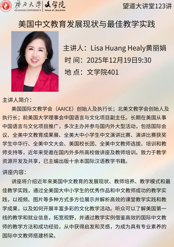 【望道大讲堂】Lisa Huang Healy黄丽娟:美国中文教育发展现状与最佳教学实践