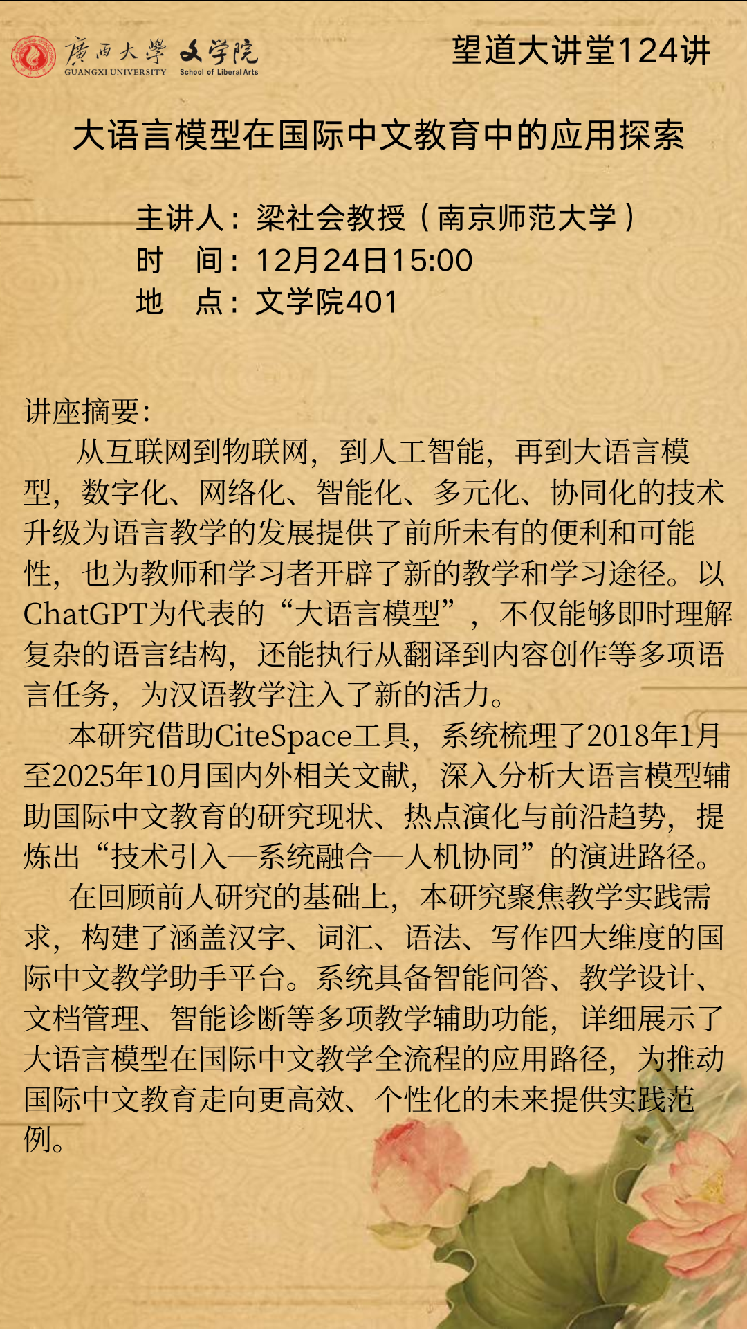 【望道大讲堂】梁社会教授:大语言模型在国际中文教育中的应用探索