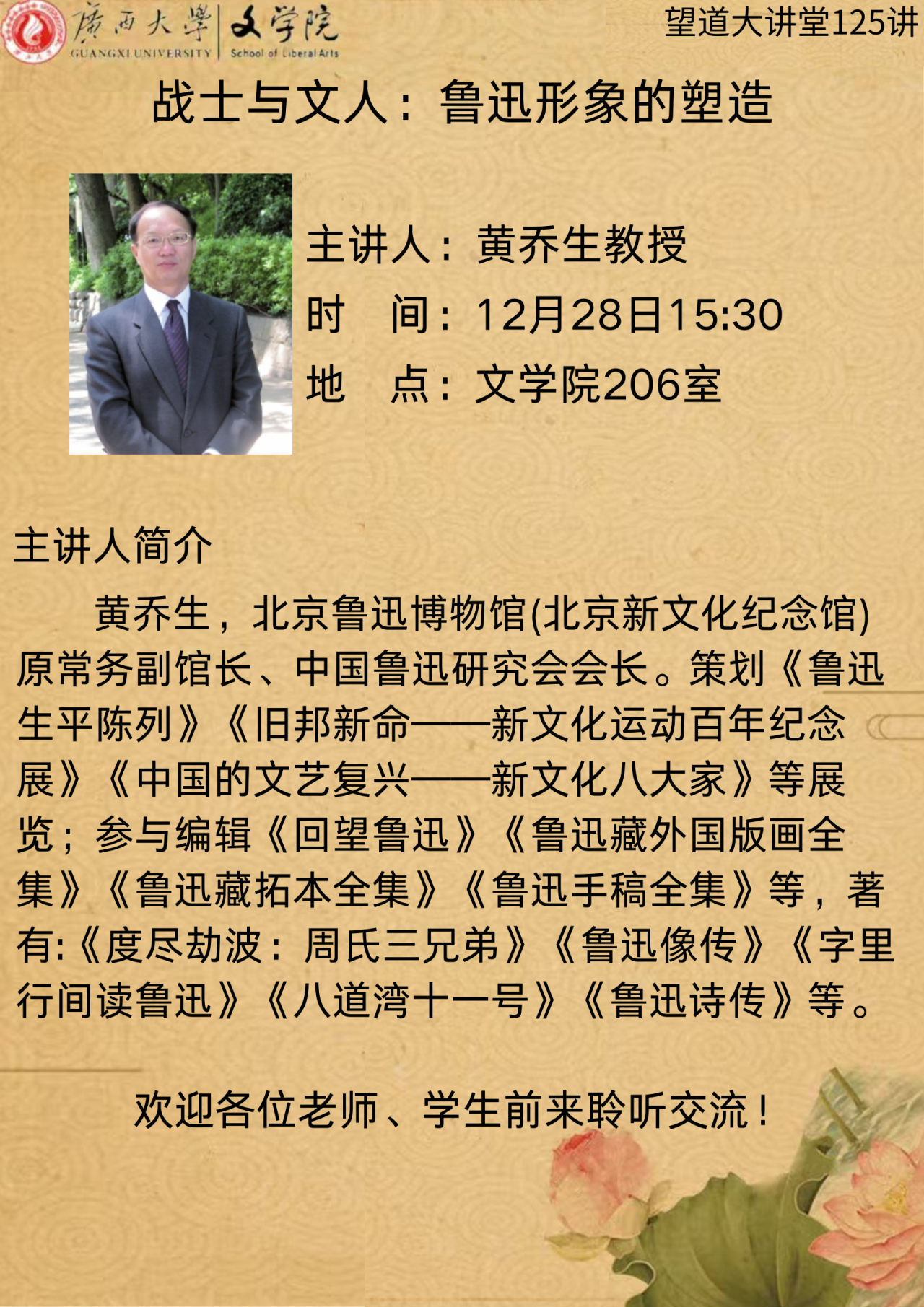【望道大讲堂】黄乔生教授:战士与文人:鲁迅形象的塑造
